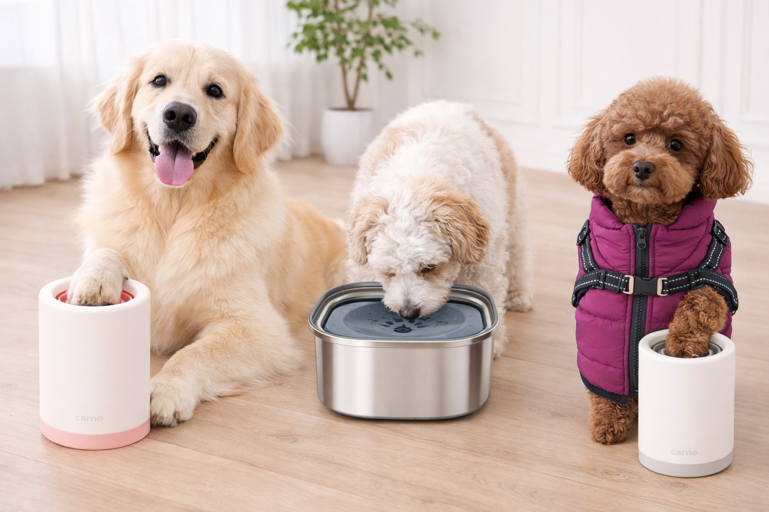 Le nettoyant pour pattes et la gamelle anti-éclaboussures vous permettent de garder votre maison impeccable en un geste. Le manteau imperméable protège votre chien lors des sorties pluvieuses tout en vous évitant le nettoyage interminable au retour. Avec le gant anti-poils, fini les tissus recouverts : vous gardez un intérieur propre sans effort.